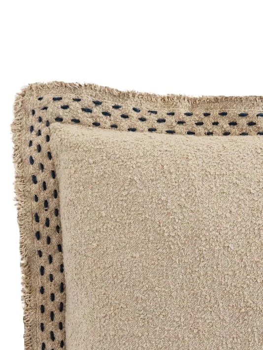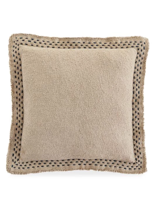 Each stitch of this pillow is embroidered by hand in a vertical stripe pattern along the flange border with a fringed edge. The Hand Quilted Border Cotton Pillow Cover is a perfect calming moment for any room needing some relaxation. A concealed zipper closure makes it easy to remove the cover and clean as needed. Insert included.