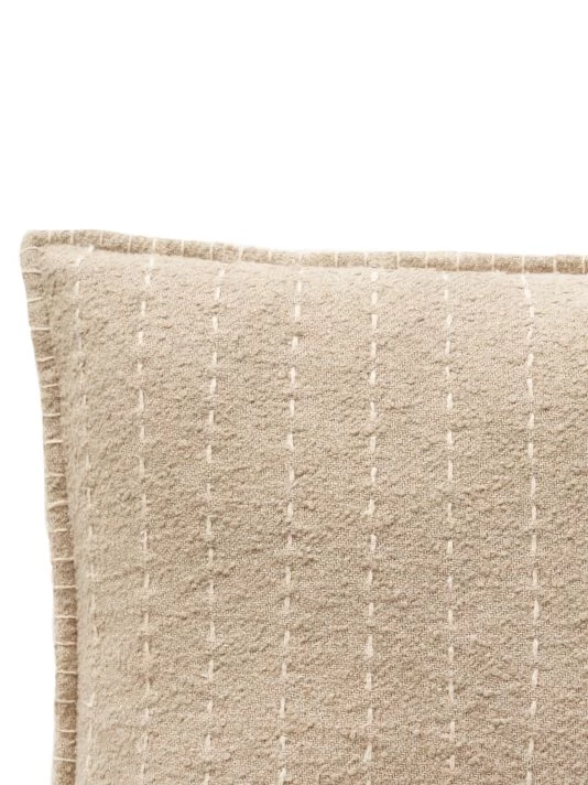Each thread is meticulously stitched by hand in an elegant stripe pattern and finished with blanket stitch details around the frame of the pillow. The Hand Quilted Striped Cotton Pillow is a perfect calming moment for any room needing some relaxation. This soft textured fabric is naturally cozy. A concealed zipper closure makes it easy to remove the cover and clean as needed. Insert included.