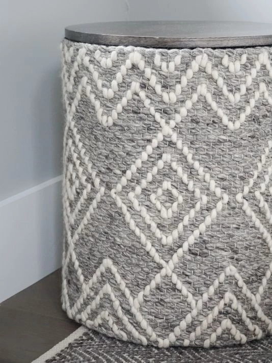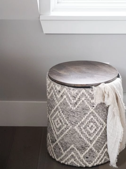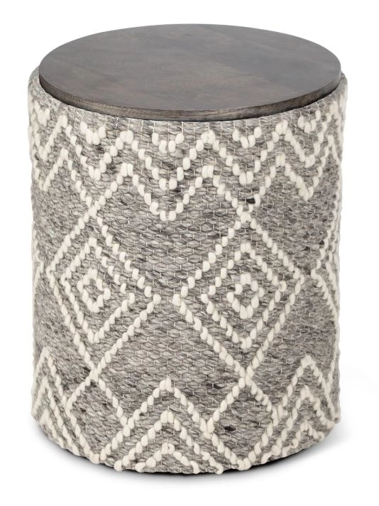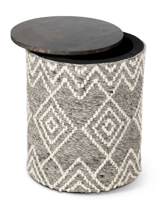 From the Handwoven Collection. Showcasing traditional Indian artistry at its core, Anaya combines the ancient Ayurveda philosophy of balance with modern design in each of its pieces, and the Handwoven Collection is no exception. Each piece is hand-crafted by artisan weavers in the heart of India, featuring earthy color palettes, intricate patterns, and rich textures. The Handwoven Diamond Storage Side Table features intricate handwoven patterns at its base and a removable wood tabletop allows for ample hidden storage space.