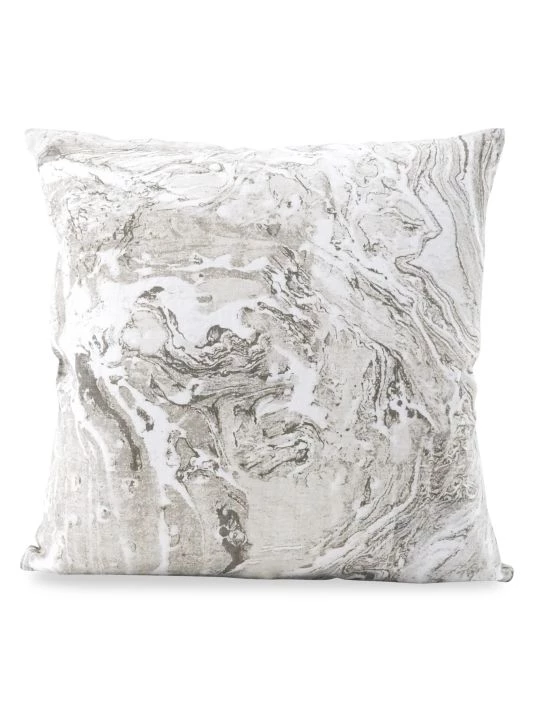 This print was created using an ancient Japanese technique called Suminagashi where ink is dropped onto water to create a unique marbling effect. This pattern is printed on fabric then washed making it soft to the touch. Due to this print technique, each pillow will be unique in its pattern. A concealed zipper closure makes it easy to remove the cover and clean as needed. Insert included.