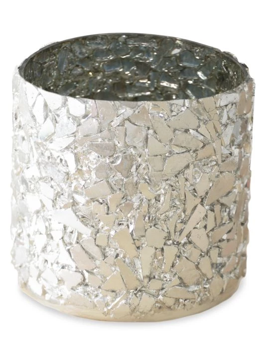 The crushed mirror pieces combined with a champagne gold finish reflect all surrounding light with flair. Our artisans hand laid each mosaic onto a solid glass vase so you can use it to display fresh flowers or display all 3 sizes as a stunning candle votive display. The Silver Crushed Mosaic Votive + Vase comes in 3 sizes. Decorate them together or mix and match pieces from the Anaya Mosaic Glass Collection.