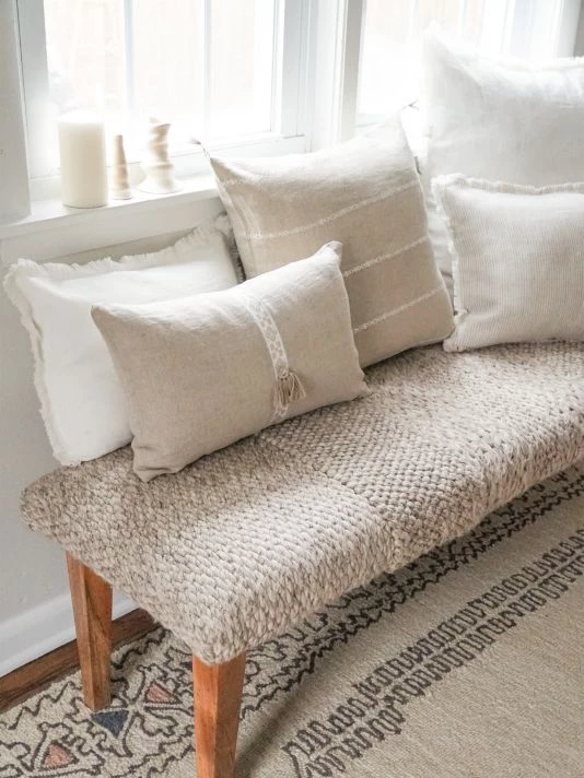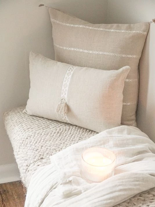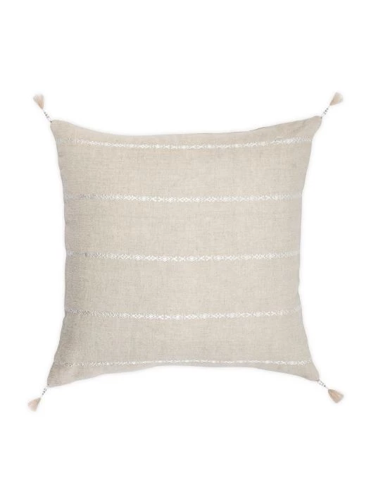 From the So Soft Linen Collection. Crafted of soft linen, this throw pillow is styled with corner tassels and embroidered pattern stripes.