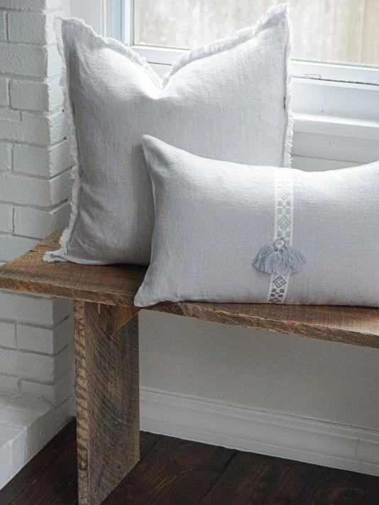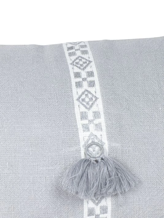 Anaya’s So Soft Linen Collection features the label’s favorite pillows and blankets, made for the natural, modern home. The linen, derived from flax, has a lustrous and durable feel. Styled with a tassel accent, this pillow features an embroidered geometric striped motif at the center.