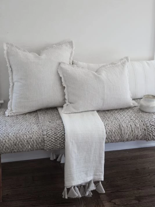 From the So Soft Linen Collection. Crafted of soft linen, this pillow is styled with thin stripes and a rustic fringe.