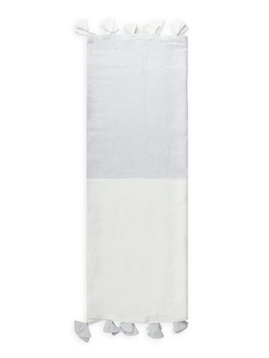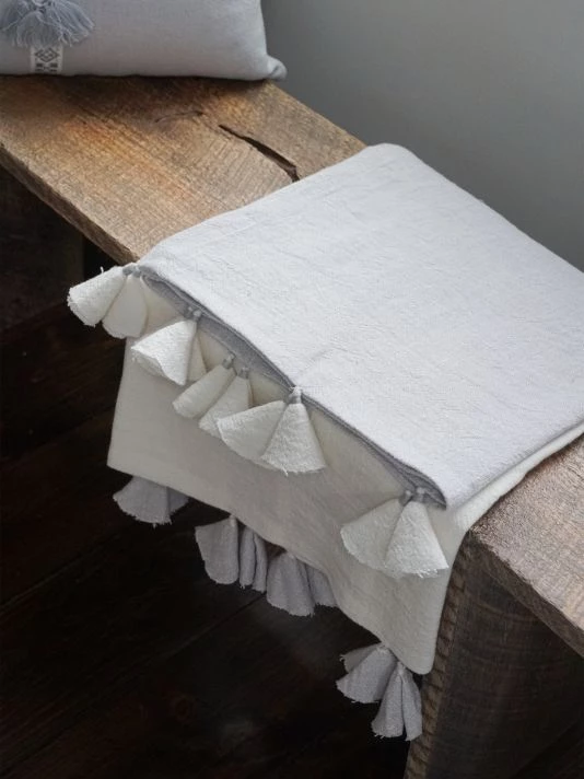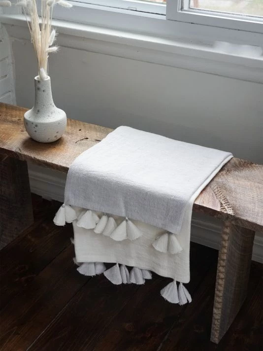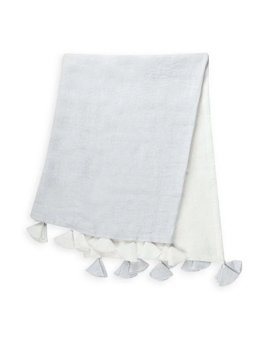From the So Soft Linen Collection. Crafted of soft linen, this two-tone throw blanket is finished with tassel trim.