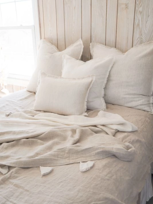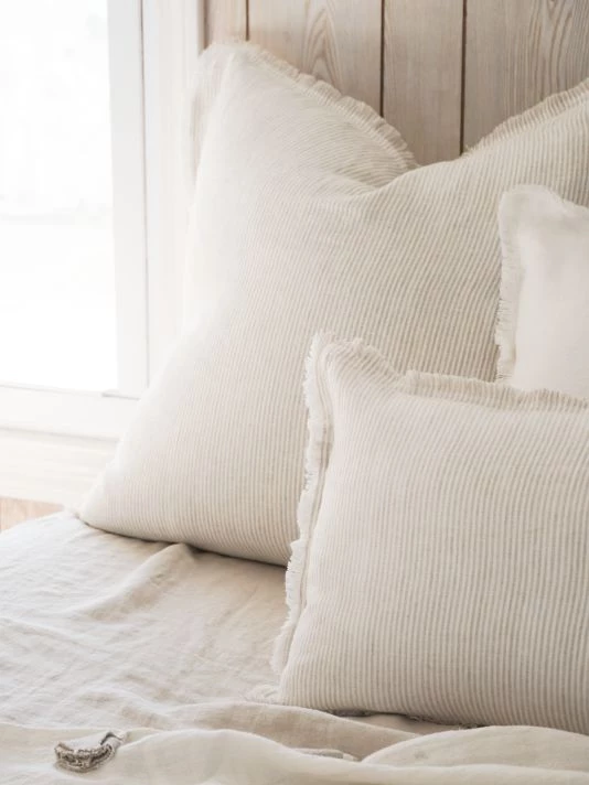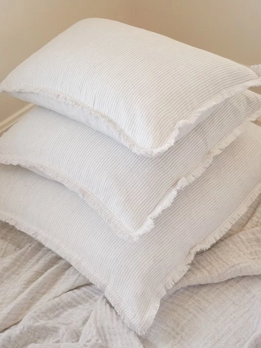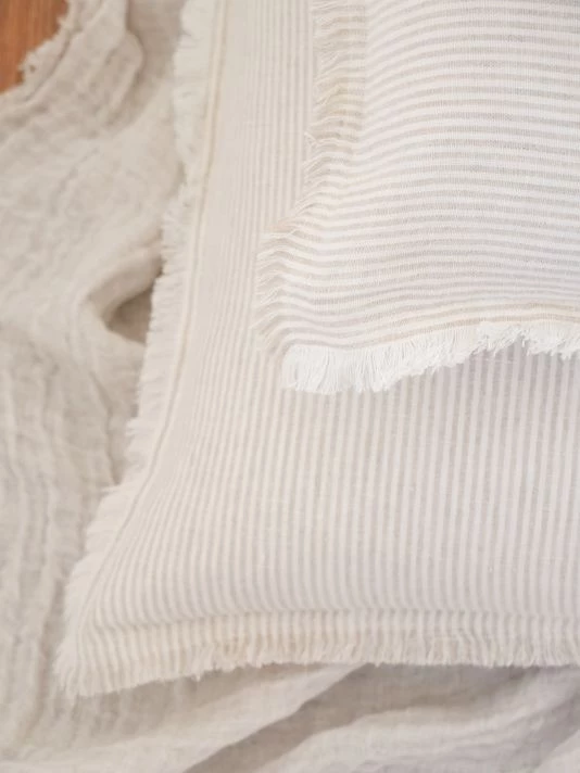 From the So Soft Linen Collection. Crafted of soft linen, this pillow is styled with thin stripes and a rustic fringe.