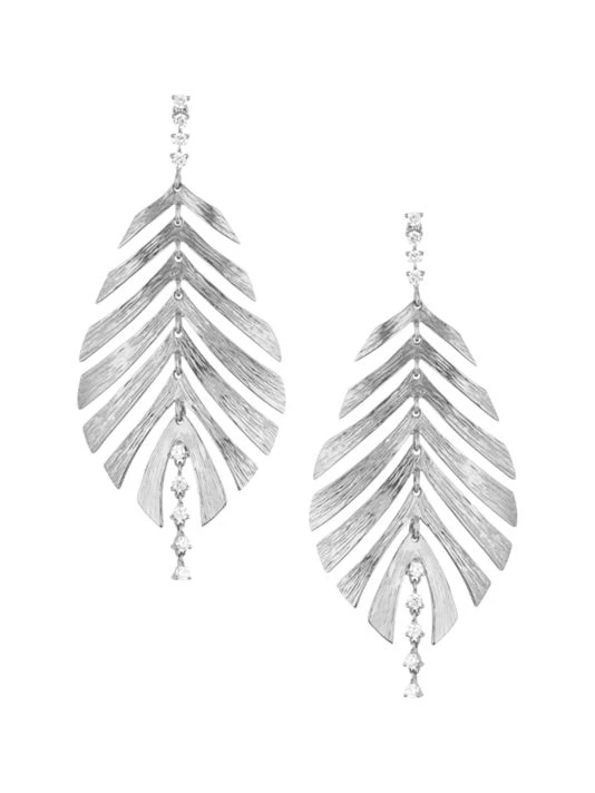 From the Bahia Collection. An intricate leaf shape defines these oversized drop earrings, crafted from 18K white gold with glittering diamond detailing.