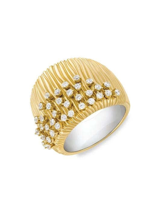 From the Bahia Collection. Paying tribute to one of Brazil’s most lush tropical regions, this wide sculptural ring wraps the finger in textured yellow gold and sparkling diamond pavé.