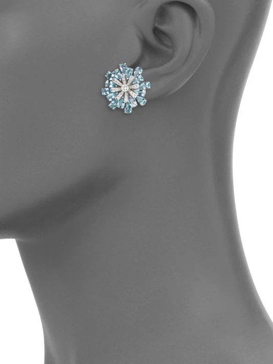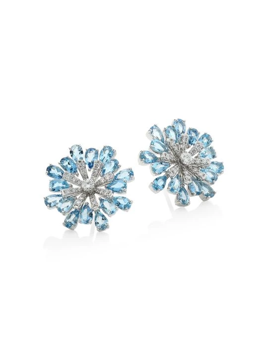 From the Botanica Collection. Lovely snowfalke earrings with aquamarine stones and diamonds exude refinement.