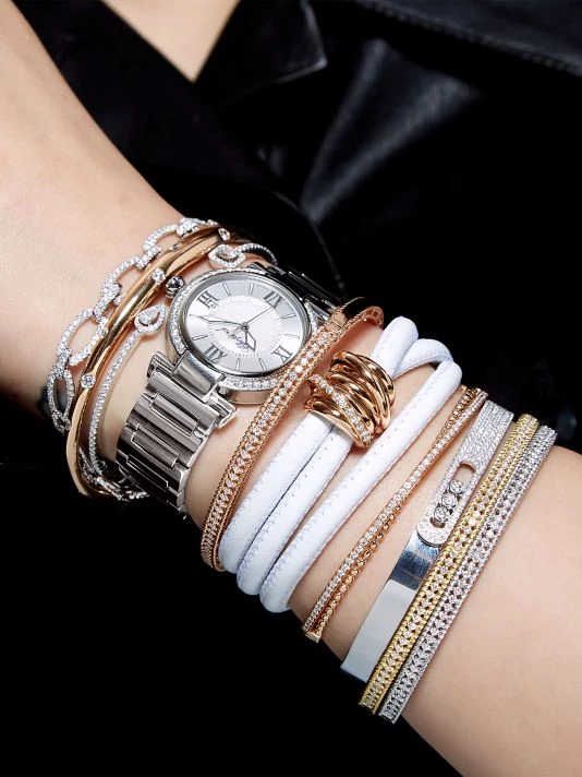 - Bubbled rose gold bangle overlaid with diamond-pavé row