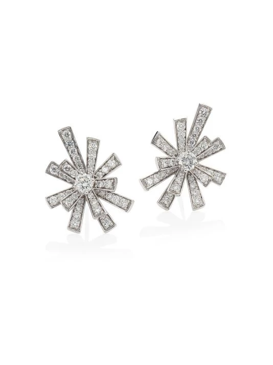 From the Labyrinth Collection. Brilliant diamonds adorn 18K white gold earrings in an abstract shape.