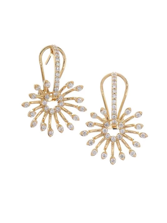 Structural diamond pavé earrings feature a bold floral design.