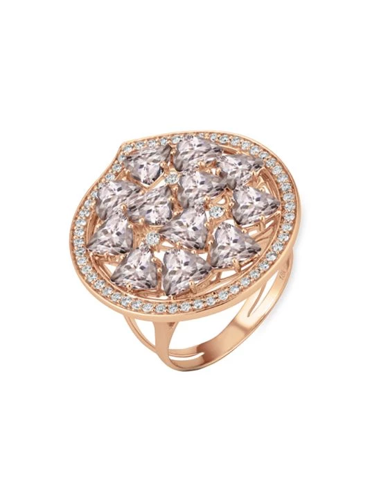 From the Mirage Collection. Trillion morganite stones pair with glittering pavé diamonds in this bold, glittering cocktail ring.