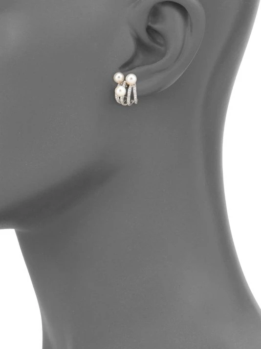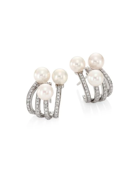 - Four-row diamond-pavé ear cuff capped with elegant pearls